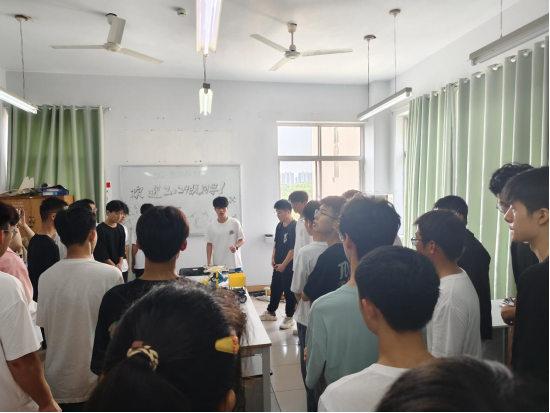 每个实验室都安排了负责人为新生进行讲解,重点介绍了实验室目前所获得的成就,科研项目及未来发展。通信工程实验室内,负责人热情洋溢地走上前,拿起一块电路板,向同学们详细讲解电子元件的识别、电路原理的构建,以及这些基础实验如何为后续复杂的电子系统研发筑牢根基。同学们围成一圈,聚精会神地聆听,有的还不时在笔记本上记录要点,生怕错过任何一个关键细节。