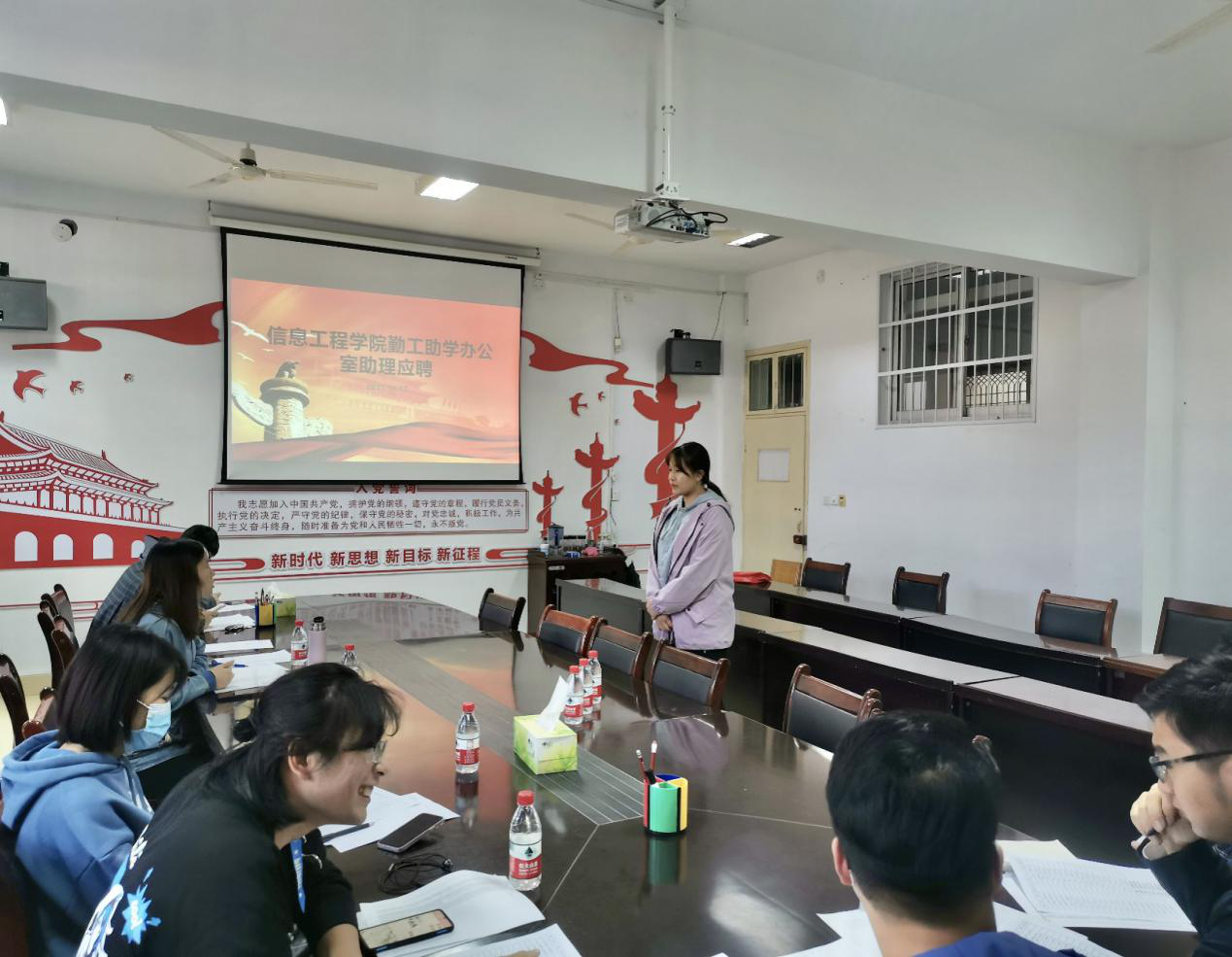 本网讯(学生记者/吴忠豪)10月17日上午,信息工程学院于12教116会议室进行勤工助学办公室助理面试,本次面试由17级辅导员张露及主席团成员担任评选。