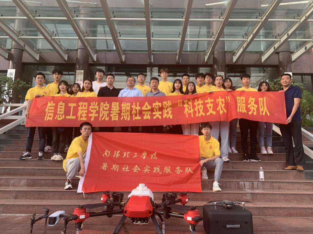 本网讯(特约记者/张露 学生记者/王雪儿)7月9日-11日,信息工程学院领导班子及指导老师郭建昌、李志带领“科技支农”志愿服务队共20名同学赴淅川县就无人机相关实际应用情况进行调研。