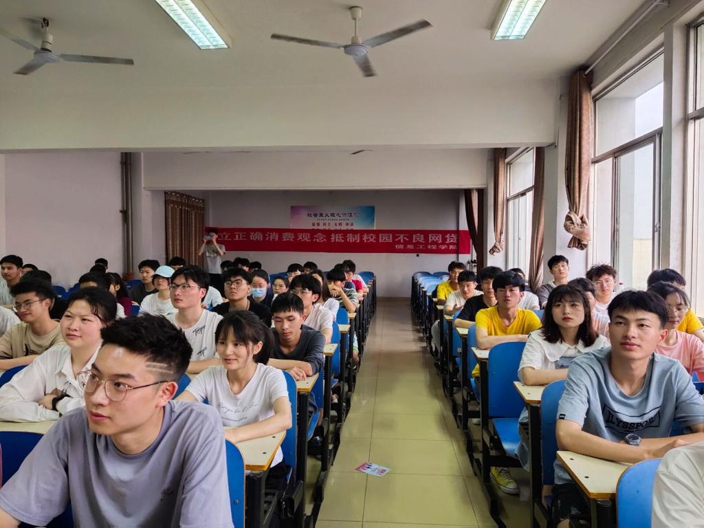 本网讯(学生记者/周浩)6月6日,信息工程学院在12号楼5楼举办“拒绝网贷,理智消费”主题班会,20级全体学生参加,由各班同学负责主持。