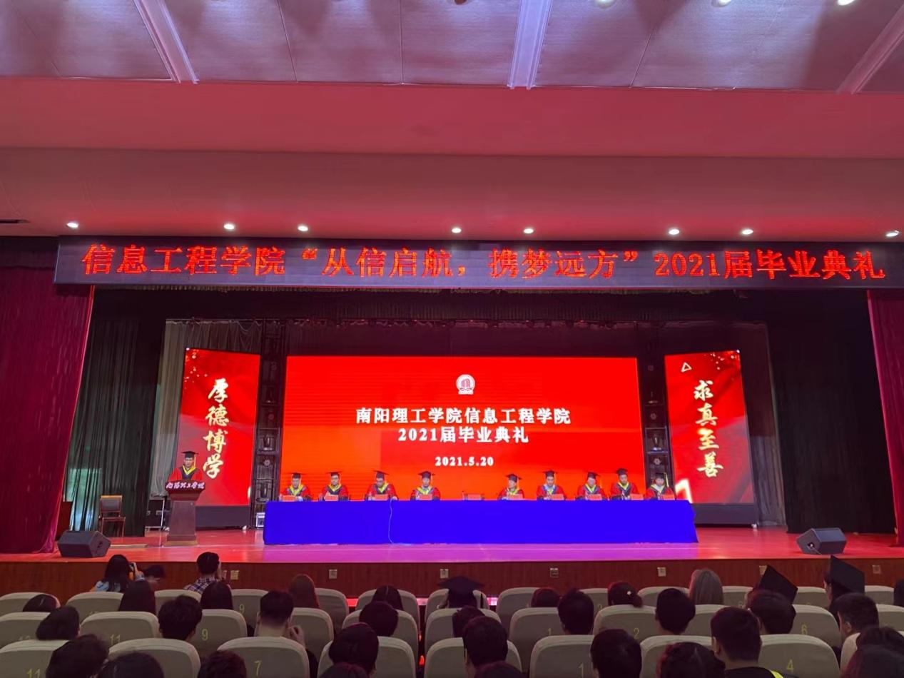 本网讯(特约记者/张露学生记者/姚先玲)5月20日上午,信息工程学院在毕业大厅举行“从信启航,携梦远方”2021届毕业典礼。学院领导班子成员、部分教师代表、全体辅导员及2021届在校毕业生参加典礼。