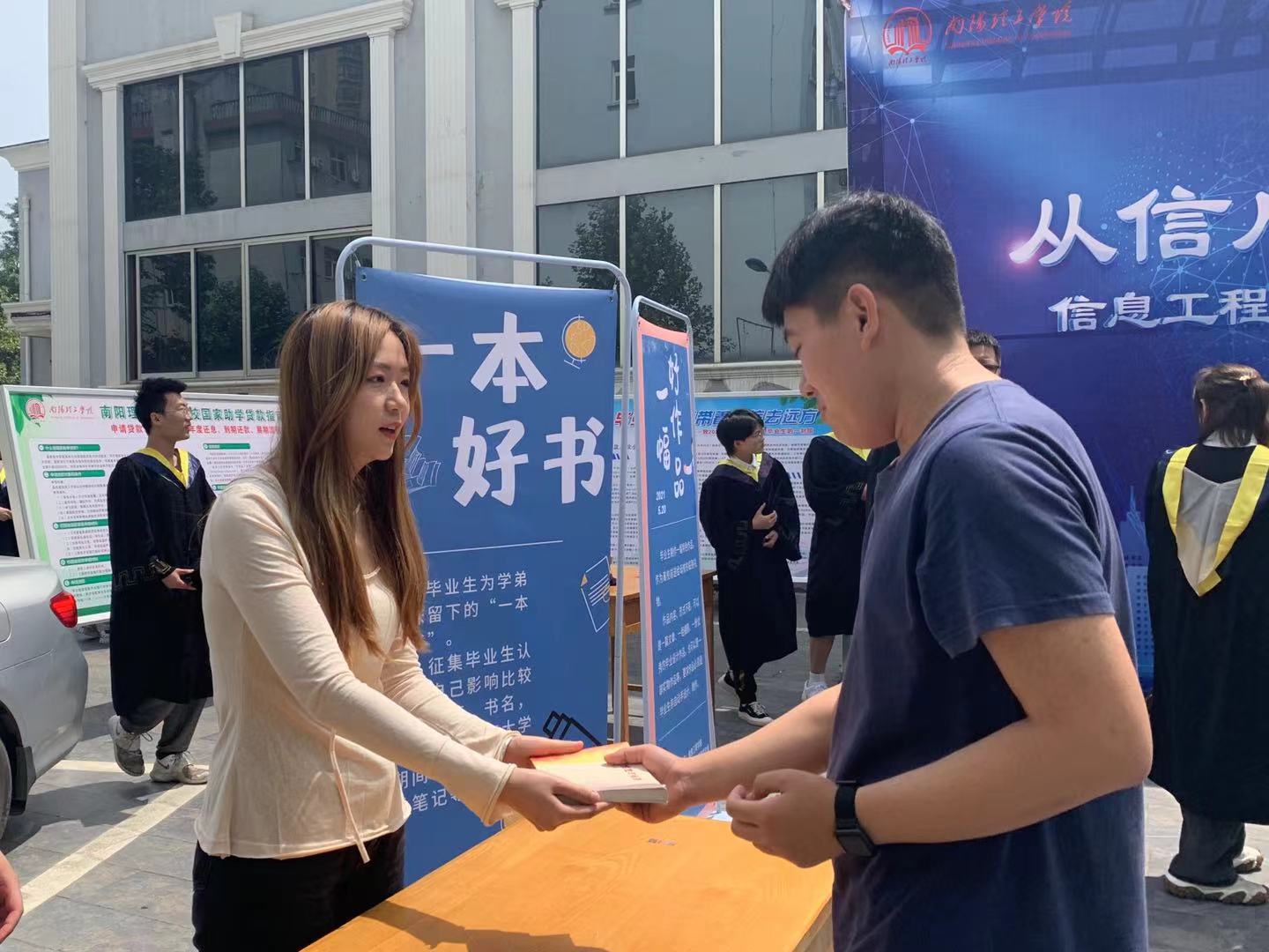 本网讯(学生记者/卢爽)5月20日,“多一份母校记忆,轻一点毕业行囊”,信息工程学院开展好书、作品传递活动,2021届毕业生积极参与。