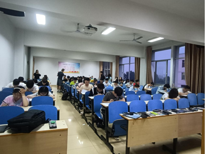 笔试中,比赛现场紧张有序,参赛同学沉着冷静、认真答题,严格遵守考场纪律,顺利交卷,展现出自己良好的心态和风貌。