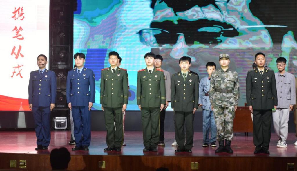节目伊始,一段段朗诵《投身军营,奉献青春》《中国少年说》激情澎湃,迅速点燃现场的热烈气氛,展现了学院青年学子的无限活力。节目《军魂之火,延续不灭》以08年汶川地震一群空降兵营救同胞,当年被救起的孩子在20年驰援武汉,共同战“疫”为原型展开演绎,角度独特,感人肺腑。情景剧《敢以热血铸山河》还原狼牙山五壮士的壮举,再现了革命战争年代不怕牺牲的英雄气魄。此外,像《投身军营,保家卫国》《携笔从戎,建国强军》《五四风云》《立志报国,永记先烈》等节目同样紧扣参军报国主题,演员们用心的表演,绚丽的灯光,悠扬的音效给在场观众留下了深刻印象。
