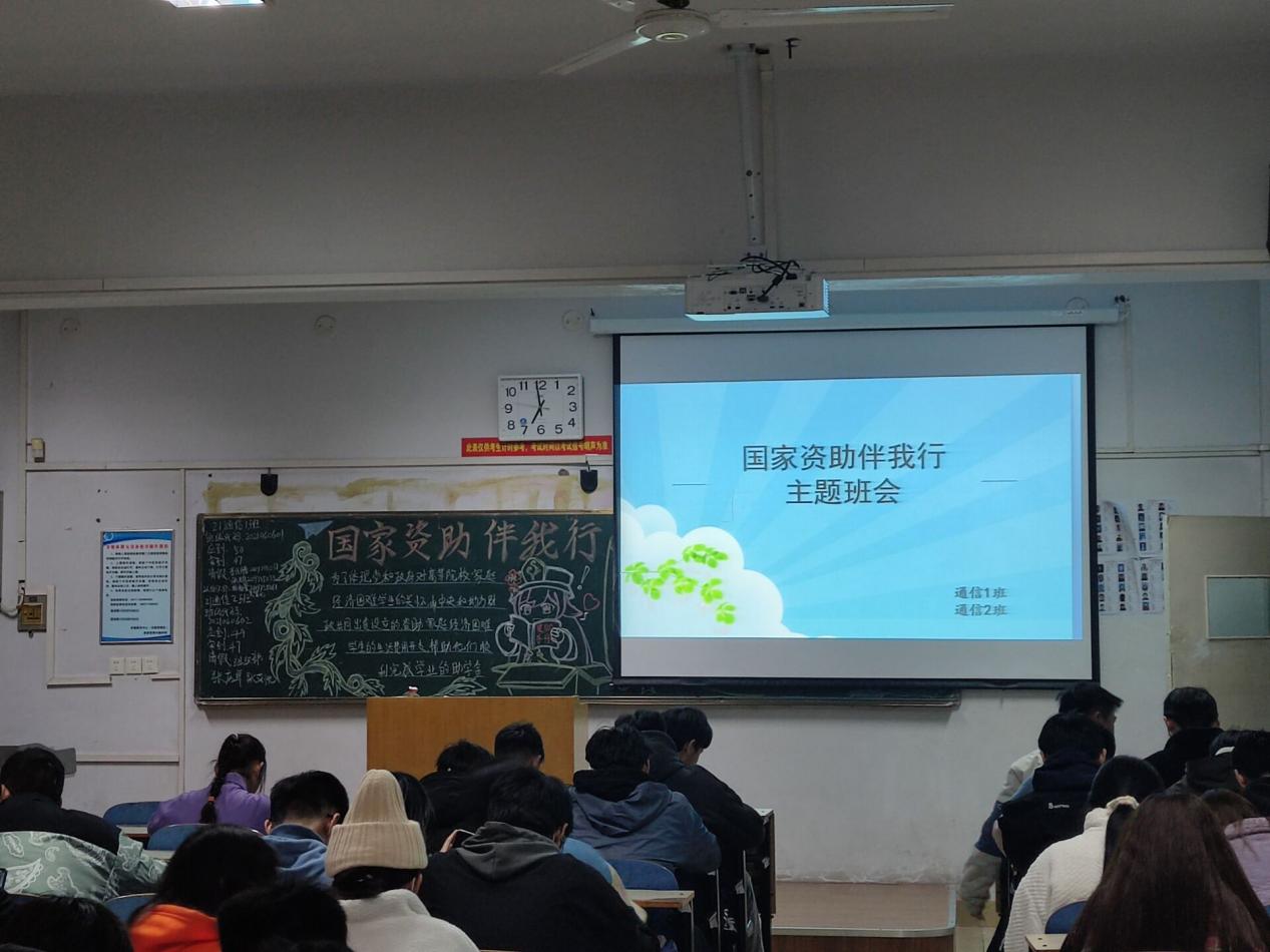 本网讯(学生记者/王雪儿)为切实做好国家资助政策的宣传工作,让广大学生更加全面和深入的了解国家资助政策,在全校营造关心帮助家庭经济困难学生的浓厚氛围,确保国家资助政策顺利贯彻实施,11月28日晚,信息工程学院在12教5楼开展各教室开展主题班会,21级全体学生参加。