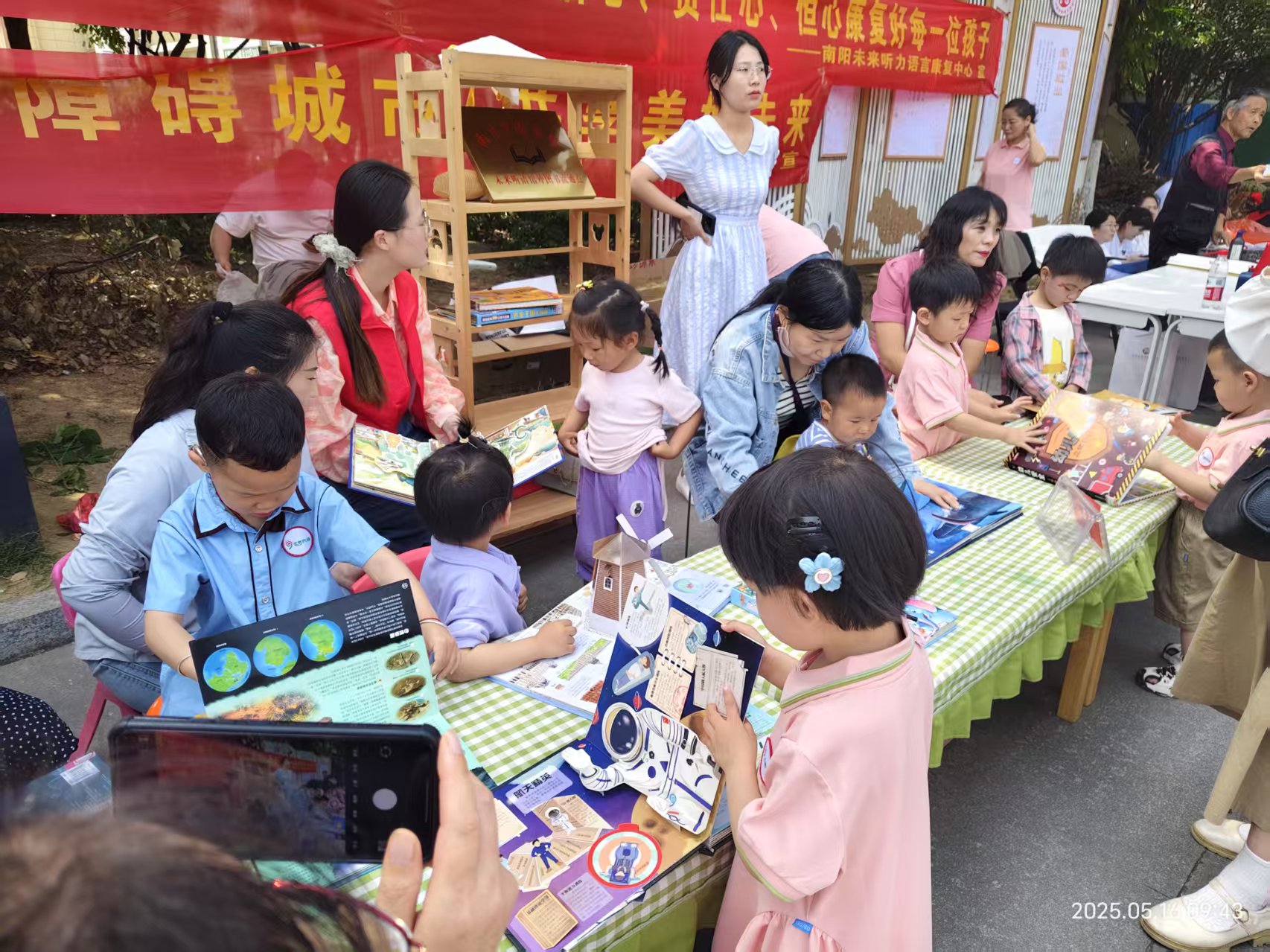 活动现场,信息工程学院的志愿者们积极协助活动主办方完成场地布置、活动组织安排、奖品颁发等工作。“融合手绘”环节,大学生们化身“手语小老师”,用手势辅助听障儿童与健全儿童共同完成手工艺品,让色彩与欢笑在画布上交织,成为“残健共融”的生动注脚。