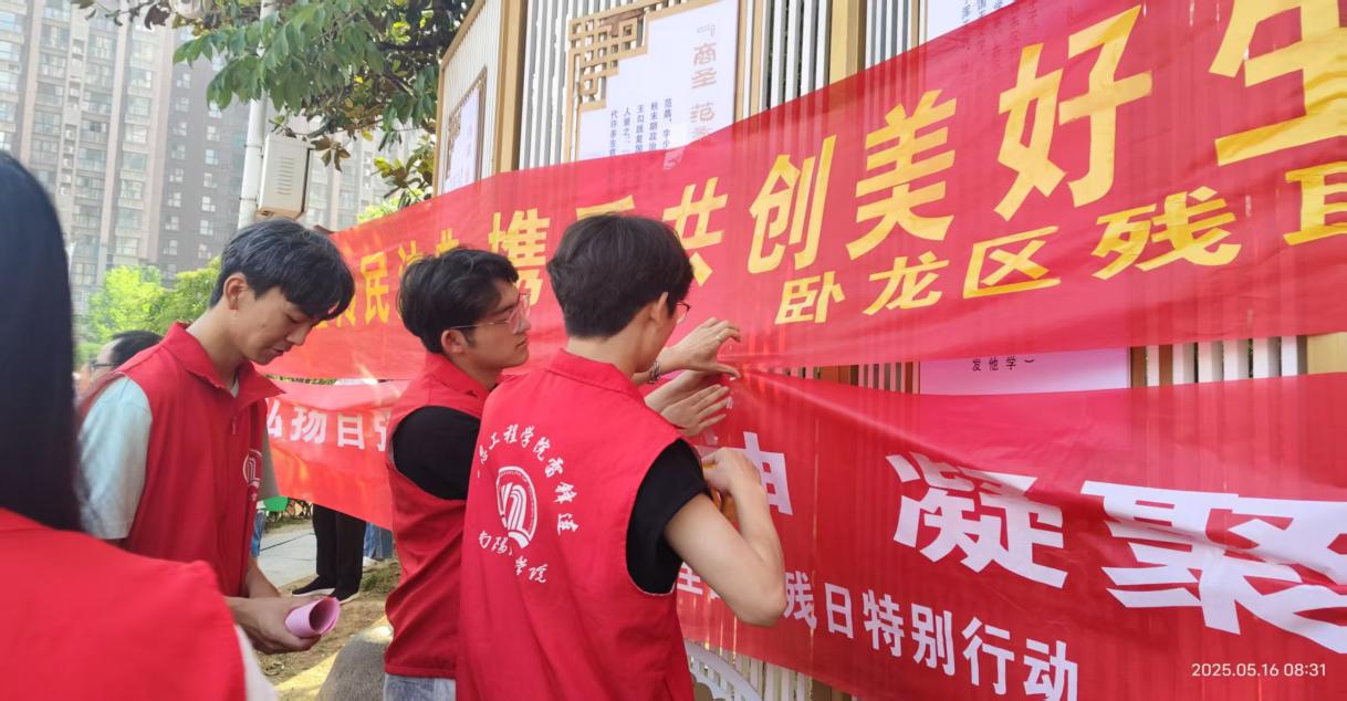 本网讯(学生记者/汪亚卓)5月16日,南阳市卧龙区新时代文明实践中心迎来一群充满活力的青年身影——来自信息工程学院的学生志愿者,与社会各界共同参与第三十五次全国助残日活动,以实际行动践行“弘扬自强与助残精神,凝聚团结奋进力量”。