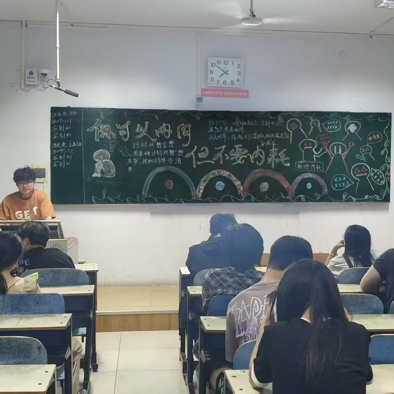 班会上,各班主持人首先结合精心制作的PPT和生动有趣的视频,深入浅出地讲解了“内向”与“内耗”的区别。他们通过引用心理学研究数据指出,内向是一种性格特质,并非缺陷,而心理内耗则源于过度的自我怀疑与精神内耗,会对身心健康造成负面影响。随后,主持人还分享了许多贴近大学生生活的真实案例,从人际交往中的紧张焦虑,到期末考试前的自我否定,引发了同学们的强烈共鸣。