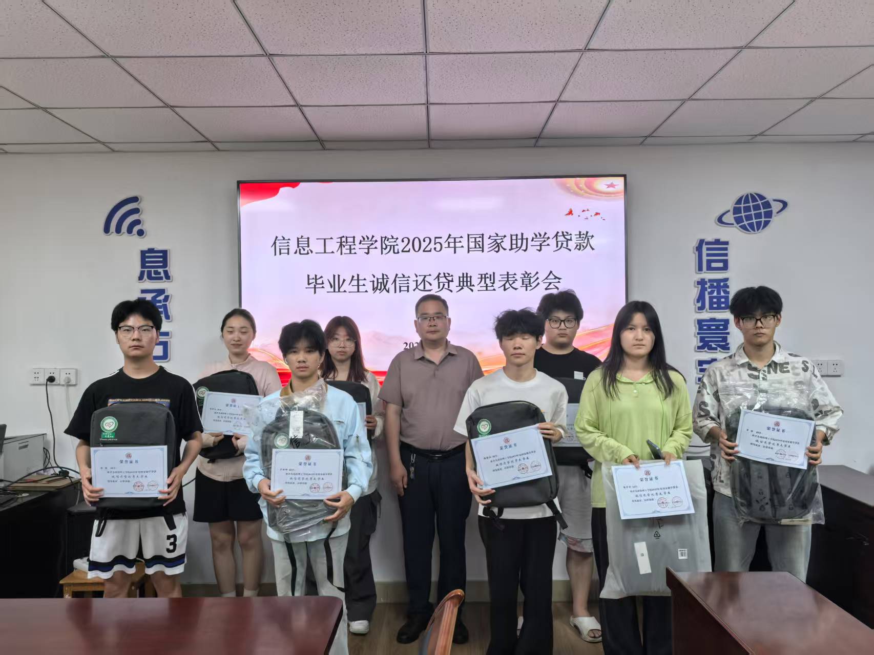 本网讯(学生记者/王思佳)6月9号,为树立资助工作先进典型,强化学生诚信还贷意识,信息工程学院于12#206举办“资助工作学生先进个人”“优秀学生资助宣传大使”“勤工助学标兵”表彰会,以及国家助学贷款毕业生诚信还贷典型表彰会。学院党委副书记白秋阳、资助服务站负责老师关阳及本次获奖学生出席此次会议。