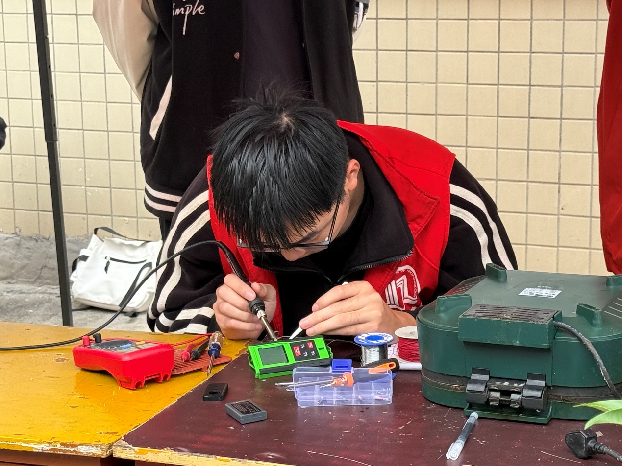活动现场人头攒动,秩序井然,志愿者们提前搭建好服务摊位,张贴服务流程与维修范围指引,迅速投入工作,此次维修服务涵盖台灯、电风扇、电饭煲、吹风机、充电宝等各类常用小家电,面对送来的故障家电,志愿者们分工明确,先耐心倾听师生描述故障情况,再通过专业仪器检测、拆解排查、零件更换等步骤精准定位问题,从修复接触不良的台灯,到检修无法启动的电饭煲,志愿者们凭借扎实的专业知识和娴熟的操作技能,逐一攻克难题,不少 “带病” 家电在他们手中重获新生,对于无法现场修复的复杂故障,志愿者们详细记录信息,告知维修方案与后续处理方式,让师生们安心放心。
