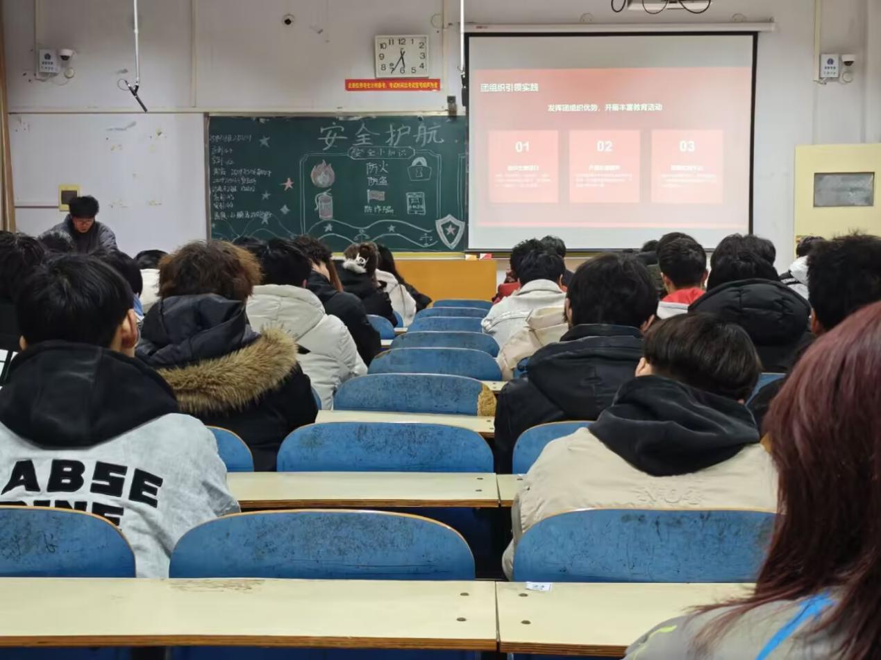 本网讯(学生记者/杨远毅)为强化学生安全防范意识与法治素养,营造平安和谐的校园氛围,3月8日,信息工程学院于4号教学楼开展了“安全护航,法治同行”主题班会,全体大一学生参加。