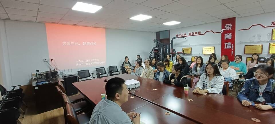 本网讯(学生记者/肖淬源)4月26日晚,信息工程学院于12教215会议室举办“关爱自己,健康成长”主题女生心理健康教育讲座,21级辅导员李志主讲,21级全体女生参加。