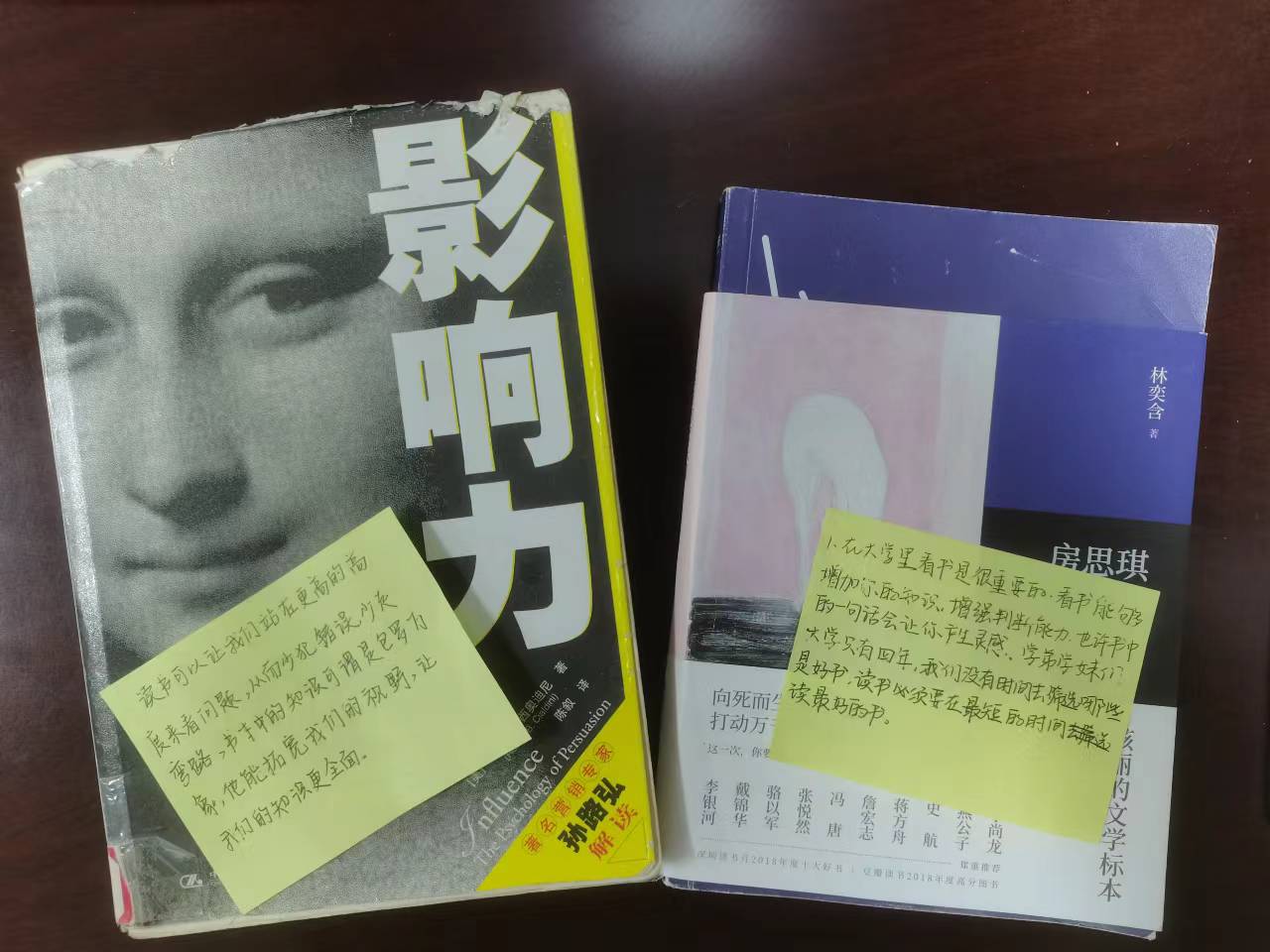 参加此次读书交流会的毕业生读书爱好者逐个上台向大家介绍自己喜欢的书,分享自己喜欢的优美句子,向在场的学弟学妹讲述书中自己印象深刻的情节及阅读感受。分享结束,学长学姐在便利签上写下分享感言,希望大家珍惜在校时光,多读书、读好书、好读书,用书本充实自己。