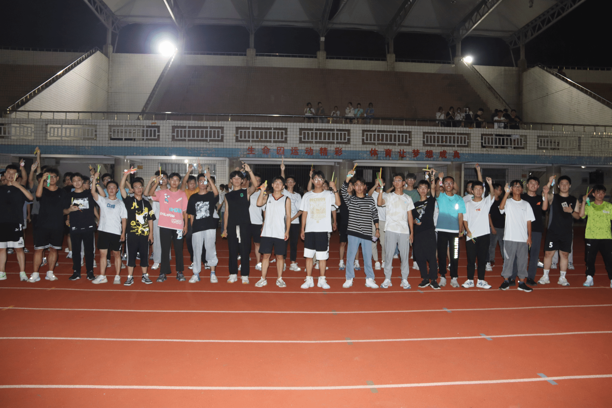 本网讯(特约记者/张露)9月12日晚,为了让22级新生尽快融入大学生活,强健其身心体魄,锻炼其意志品格,信息工程学院在东南校区操场举办以“无体育 不信工”为主题的荧光夜跑活动,近200名学生以饱满的精神参与其中。
