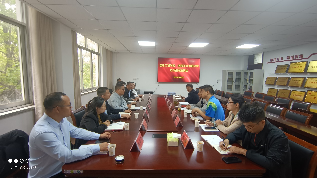 会中,王俊伟介绍了正大集团的发展历程和现状,并对南阳正大有限公司的业务工作、发展规划、人才需求和培养模式等进行了介绍。黄大勇向公司来宾介绍了我院的基本情况、人才培养、毕业生就业情况等。双方就“访企拓岗促就业”行动表示了高度肯定,认为这是一项校企双向奔赴的好事,并在产教融合、项目共建、学生就业、创新平台、学校开放日等事宜交换了意见,希望能够借助这次机会让双方能够在人才培养、技术研发等多方位深入合作。