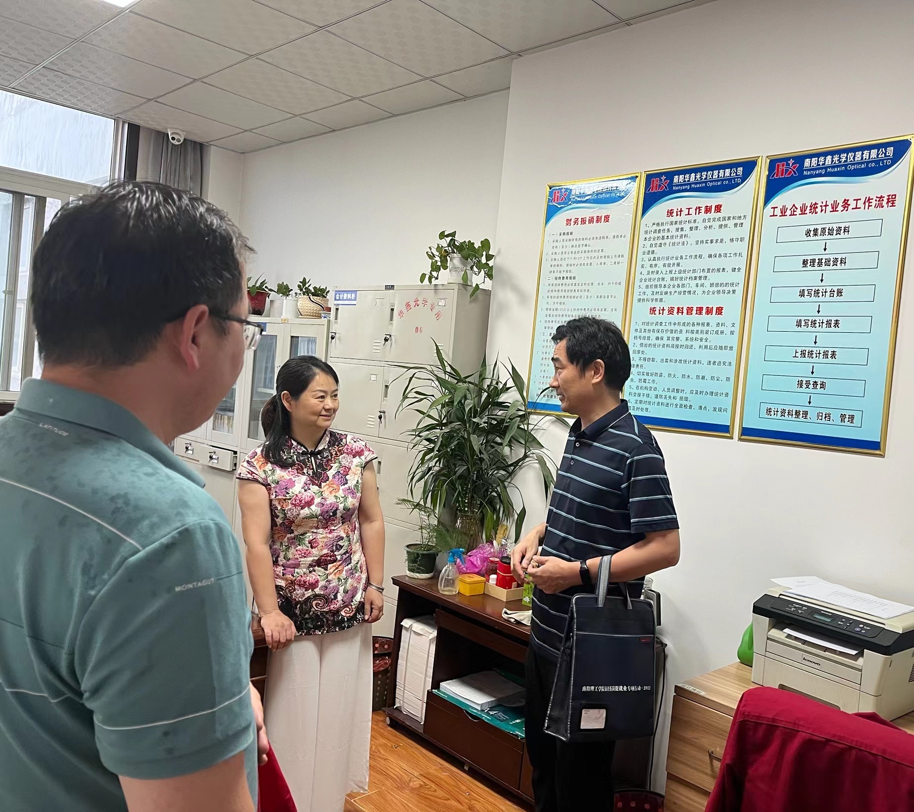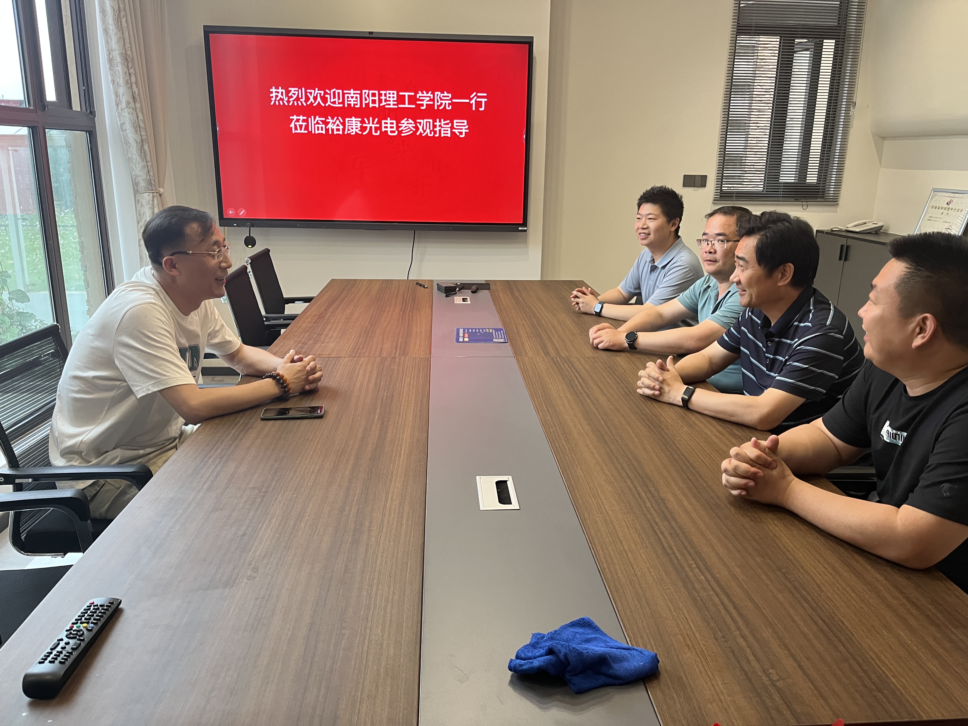 本网讯(特约记者/李志)6月16日,我院党委副书记白秋阳、副院长黄大勇、电子科学与技术教研室主任王运锋、就业专干李志一行4人赴南阳高新区光电孵化园开展访企拓岗促就业专项行动。活动中走访了南阳新兴精密光学有限公司、南阳裕康光电有限公司、南阳高新区华鑫光学仪器有限公司、南阳天堃实业(集团)有限公司、南阳新创特种设备有限公司、南阳魔力创想教育科技有限公司共6家企业。