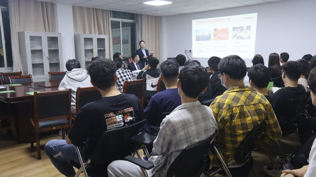 招聘过程中,宣讲人详细介绍了牧原股份有限公司的相关信息,包括其主要产业、发展历程以及未来规划等。其中,宣讲人通过列举相关的数据分析了中国的生猪养殖市场的广阔发展前景,并展示了牧原集团近年来的创造成果及延伸产业链,展现了牧原集团的在行业内的影响力。最后,南阳理工学院校友、牧园集团职员代表,结合亲身经历,讲述选择该企业的原因,并对与会同学关心的问题一一答复,让同学们从不同的角度感受到了企业的实力与文化。