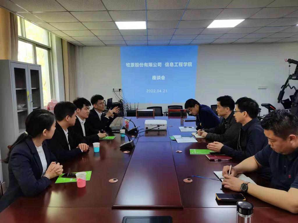 牧原股份有限公司发展前景可观,规模较大,目前员工15万人,且与我院是多年的合作伙伴关系,同时我院也向该公司输入大量优秀毕业生。本次座谈会上牧原集团代表指出对于信息工程相关专业的人才需求,分析当今时代的发展大趋势:智能化、数字化、人工智能与图像处理,又分别从数字化建设、大数据研究分析、智能设备等方面进一步剖析企业相应部门的发展方向,以及人才需求方向和就业趋势。