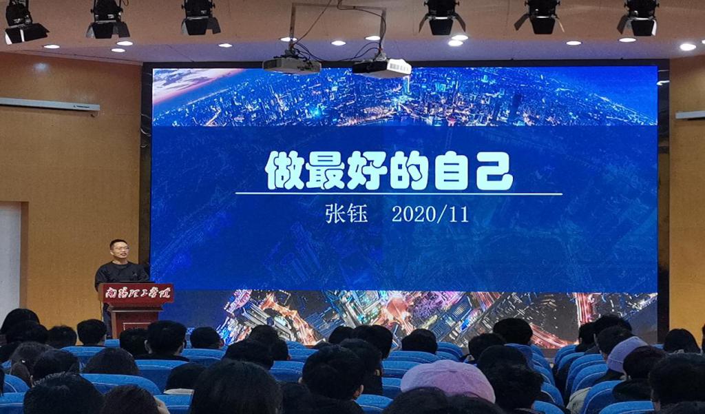 本网讯(特约记者/张露 学生记者/丁奇帅)11月29日上午,我院优秀校友张钰、王浩应邀回母校开展以“寻找最好的自己”为主题的专题讲座。此次活动由招生就业处主办,信息工程学院承办,近400人参加。