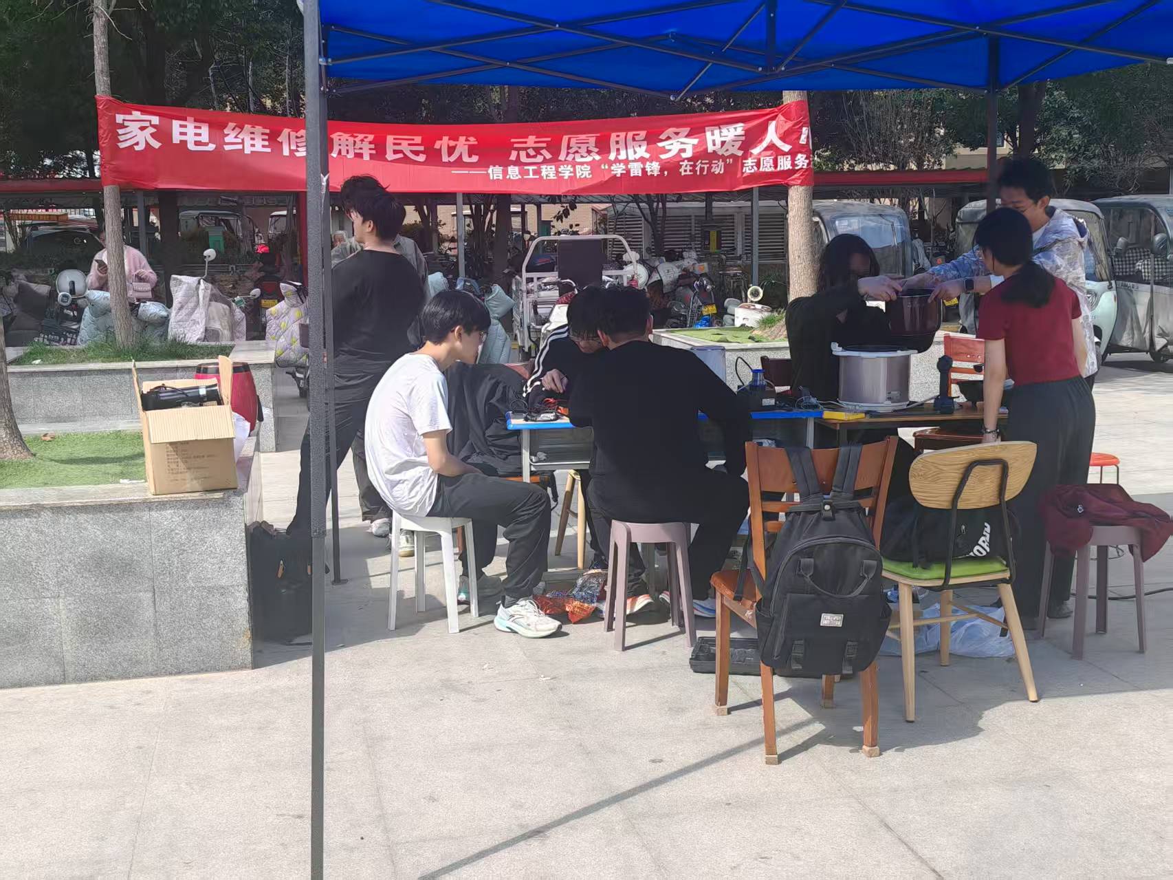 本网讯(特约记者/关阳、学生记者/陈文俊)3月23日,为了响应学雷锋号召,信息工程学院在长江社区举办了“学雷锋义务维修,美家园清洁环境”公益活动,以实际行动弘扬雷锋精神,传递温暖与正能量,此次活动由信息工程学院资助服务部主办,电子与电气技术协会成员协办。
