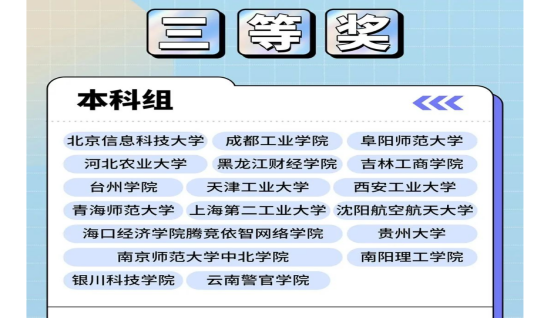 此次大赛成绩展示了我校学生扎实的理论知识和较高的专业技能,也与信息工程学院长期以来重视培养学生科研和实践能力,积极鼓励学生参与各类权威的学科竞赛和创新项目的育人思想密切相关。充分体现了我校“以赛促学、以赛促教、以赛促新、以赛促练”的人才培养模式,提升了学生的动手实践能力和创新思维能力。(校对/赵杰 审核/白秋阳)