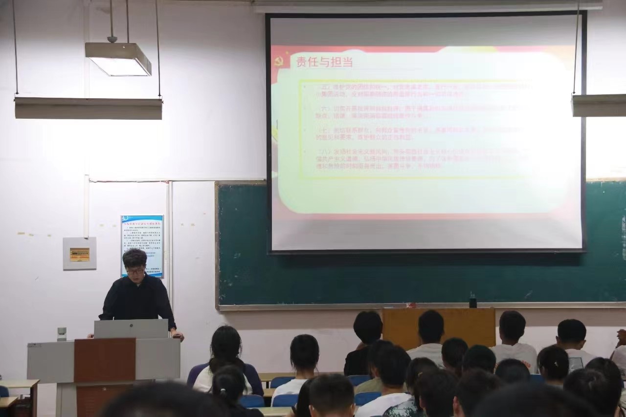 随后,郭争老师向新生介绍党员发展流程,教育引导同学们收获勇气、严守纪律,坚定同学们的入党之心。