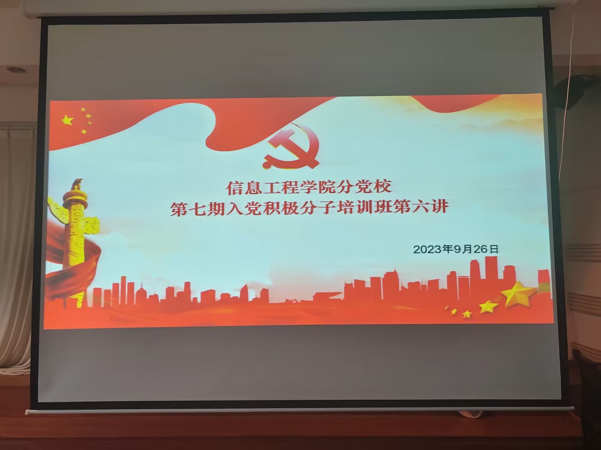 本网讯(学生记者/郑圳杰)9月26日晚,信息工程学院于12教207室开展第七期入党积极分子培训第六讲。本次讲座由学院副院长黄大勇担任主讲,信息工程学院第七期入党积极分子参与。