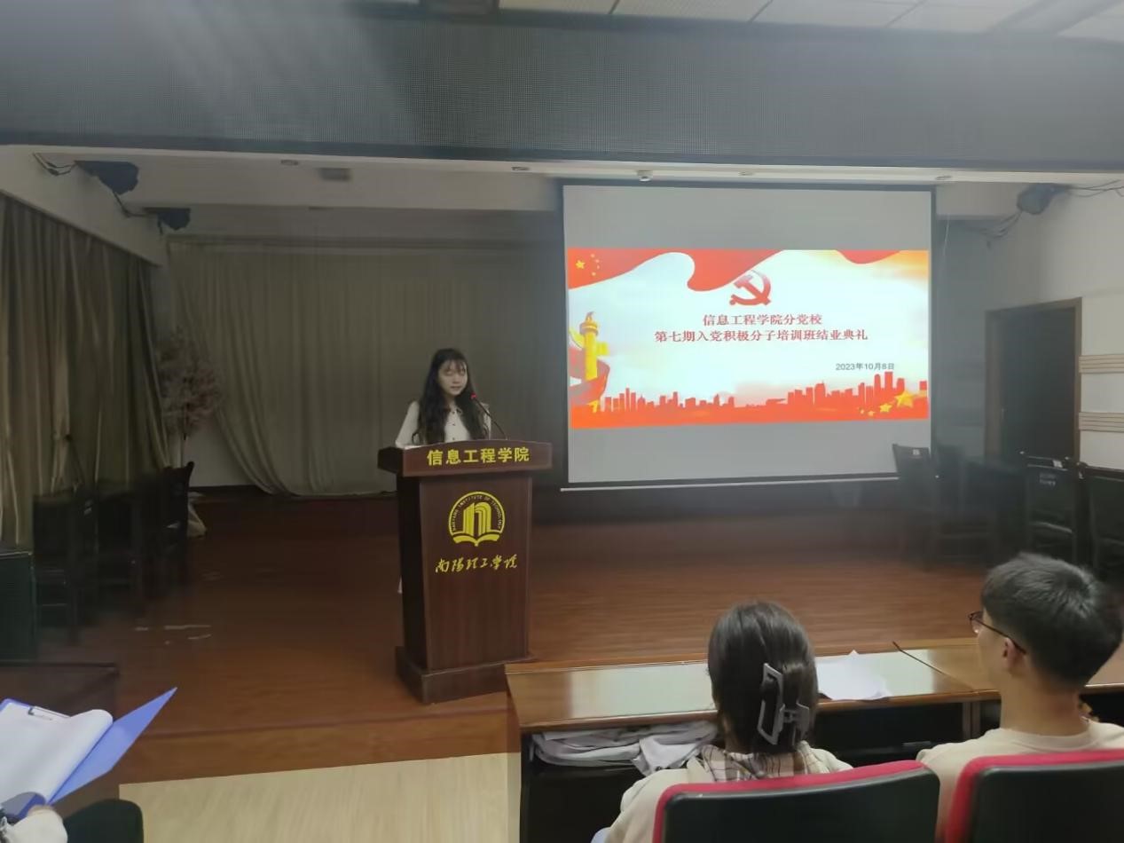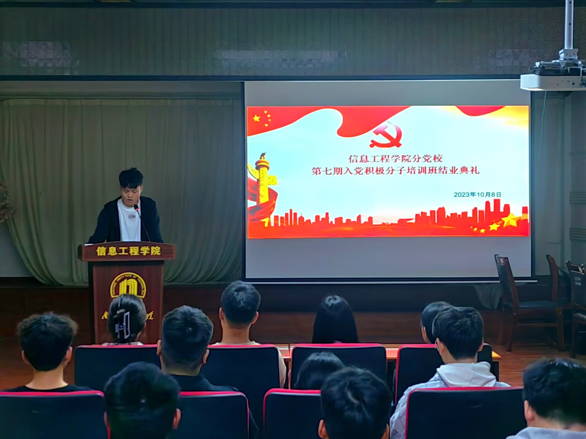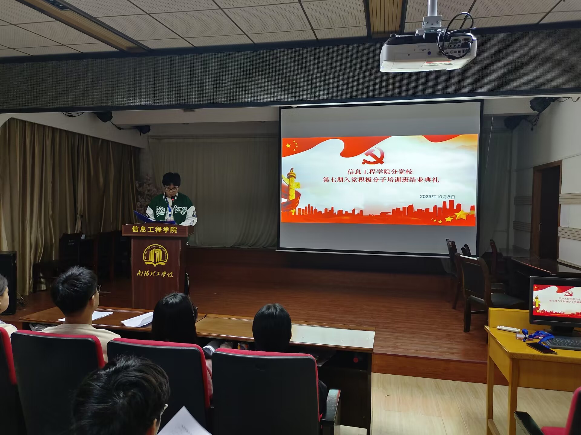 本网讯(学生记者/严佳鹏)10月8日晚,信息工程学院分党校第七期入党积极分子培训班结业典礼于12教207室举行,本期入党积极分子共43余人参加典礼。