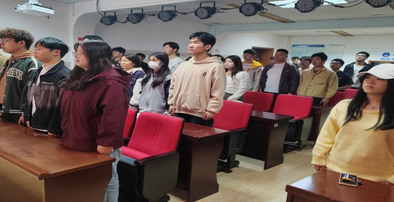 典礼在庄严的国歌声中拉开了序幕,全体成员静默肃立。