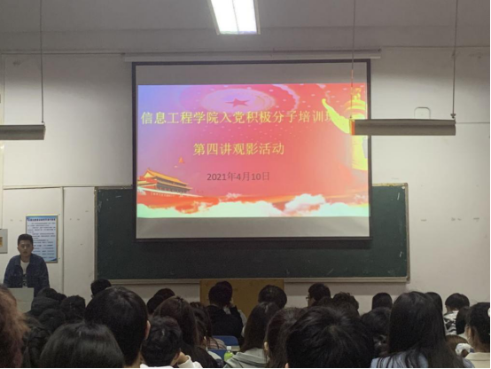本网讯(学生记者/何润玉)4月10日晚,信息工程学院第二期入党积极分子培训班第四讲在14教106举行,全体入党积极分子观看《建党伟业》。