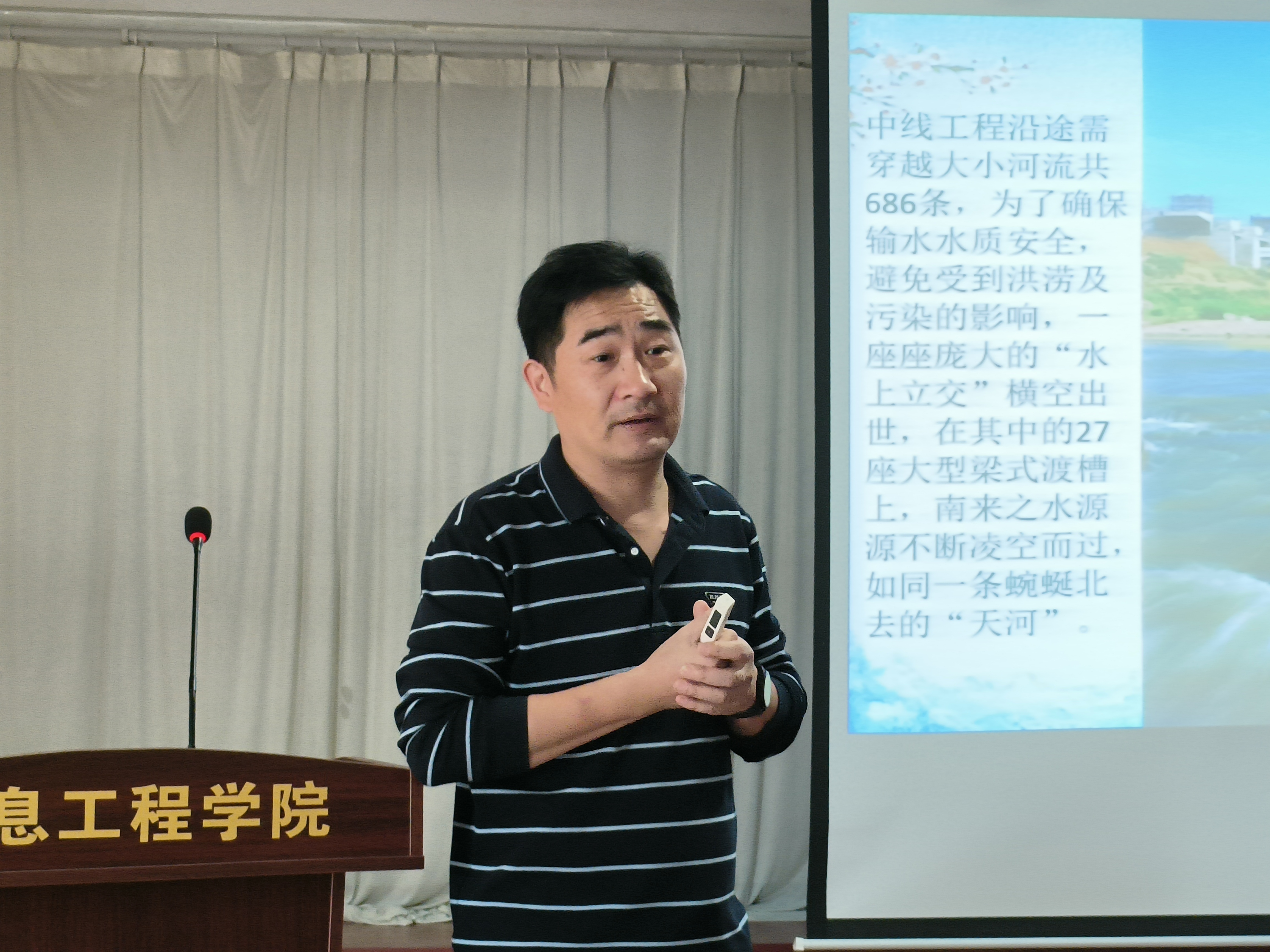 黄大勇首先围绕“南水北调精神”进行了深入讲解。他指出,南水北调精神是经过社会主义革命和建设时期、改革开放和社会主义现代化建设新时期、中国特色社会主义新时代三个时期形成的民族精神和时代精神。这种精神不仅体现了党以人民为中心的发展理念,也彰显了广大移民群众舍小家、顾大家的家国情怀。