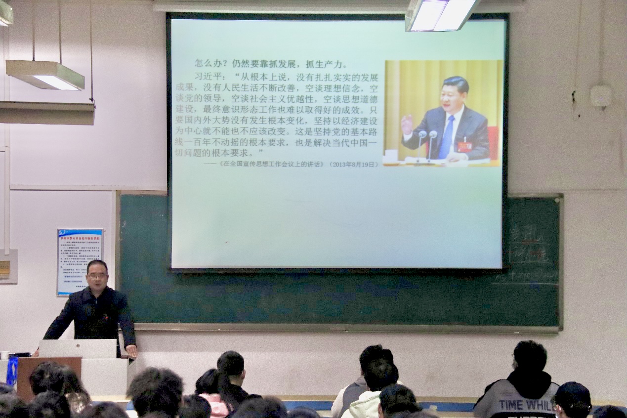 白秋阳以问题“为什么发展?”为切入点,通过毛泽东、邓小平、江泽民、胡锦涛的谈话和现实需要两个方面,解释了发展对于提升国力、改善民生、提升国际地位等方面的重要性。白秋阳通过解读习近平总书记的一系列讲话,向在场的同学们诠释了我国应实现怎样的发展,以及怎么高质量发展,使在场同学深刻地了解到我国当今的发展现状和未来的发展方针。