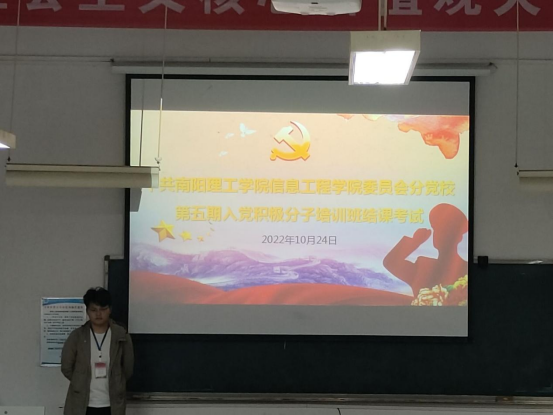 本网讯(特约记者/郭争 学生记者/吴忠豪)10月24日晚,为考察第五期入党积极分子培训成果。信息工程学院于14教206教室进行第五期入党积极分子培训班结业考试。第五期入党积极分子培训班全体学员参加考试。