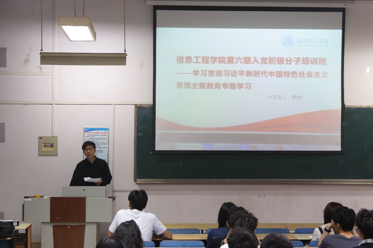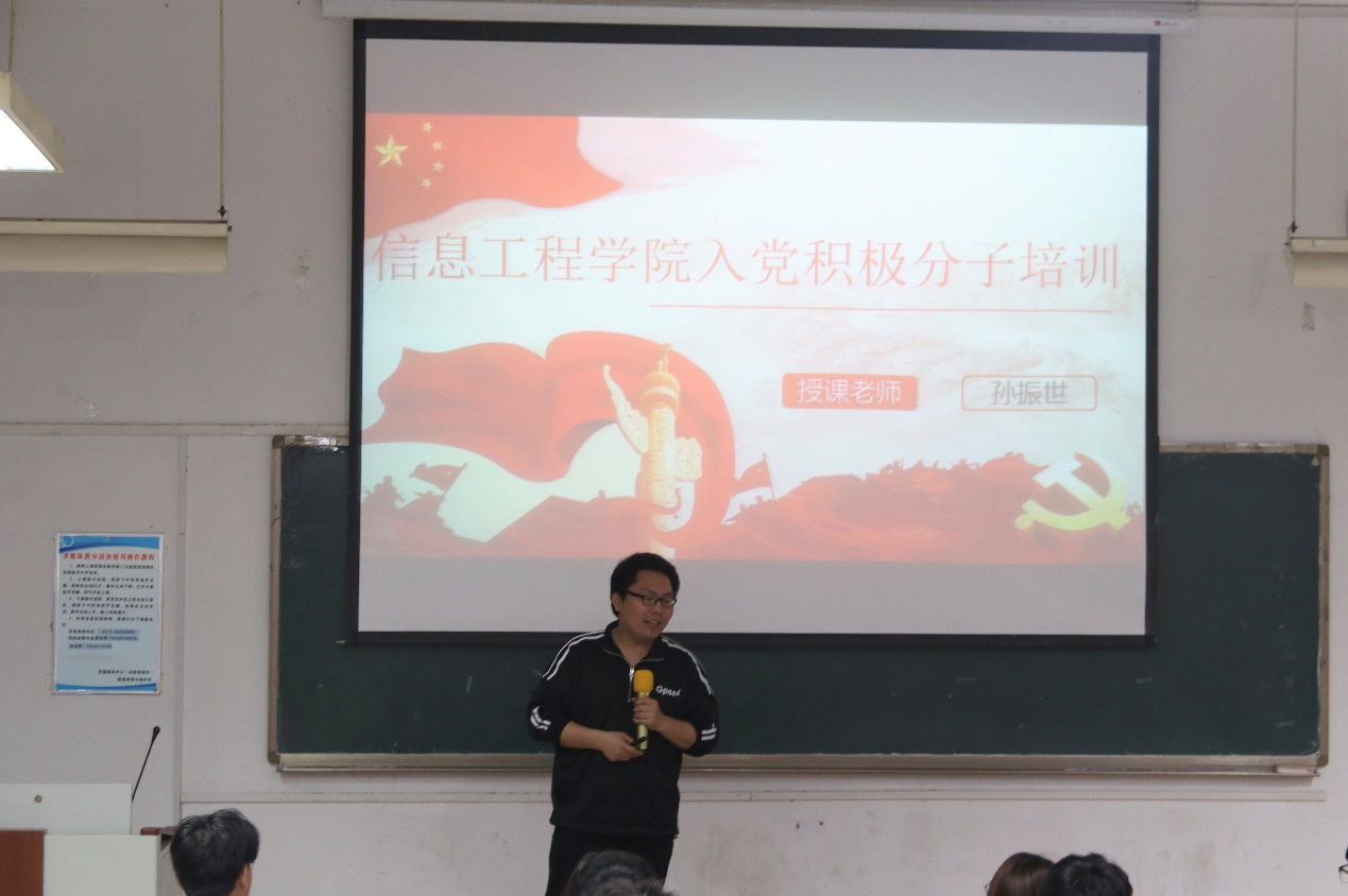 本网讯(学生记者/梁森森)4月16日晚,为加强信息工程学院第六期入党积极分子的思想政治教育,信息工程学院于14教102室开展“第六期入党积极分子培训第五讲”讲座。本次讲座由第一党支部书记郭争、优秀博士党员孙振世出席并主持及信息工程学院第六期入党积极分子参与。