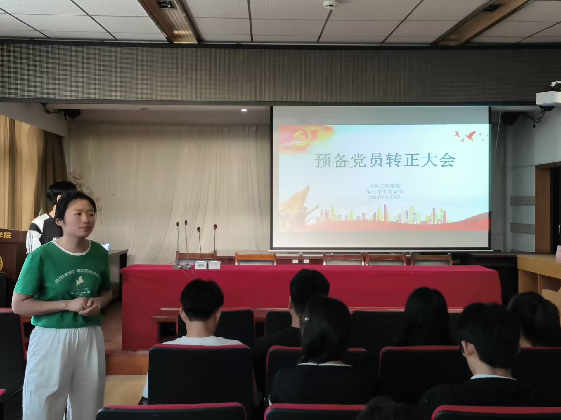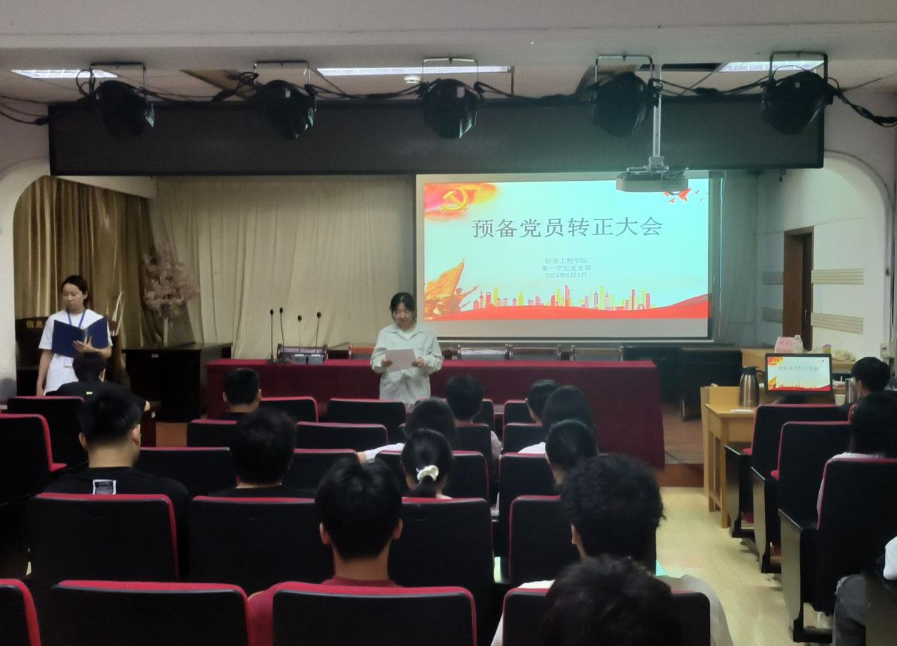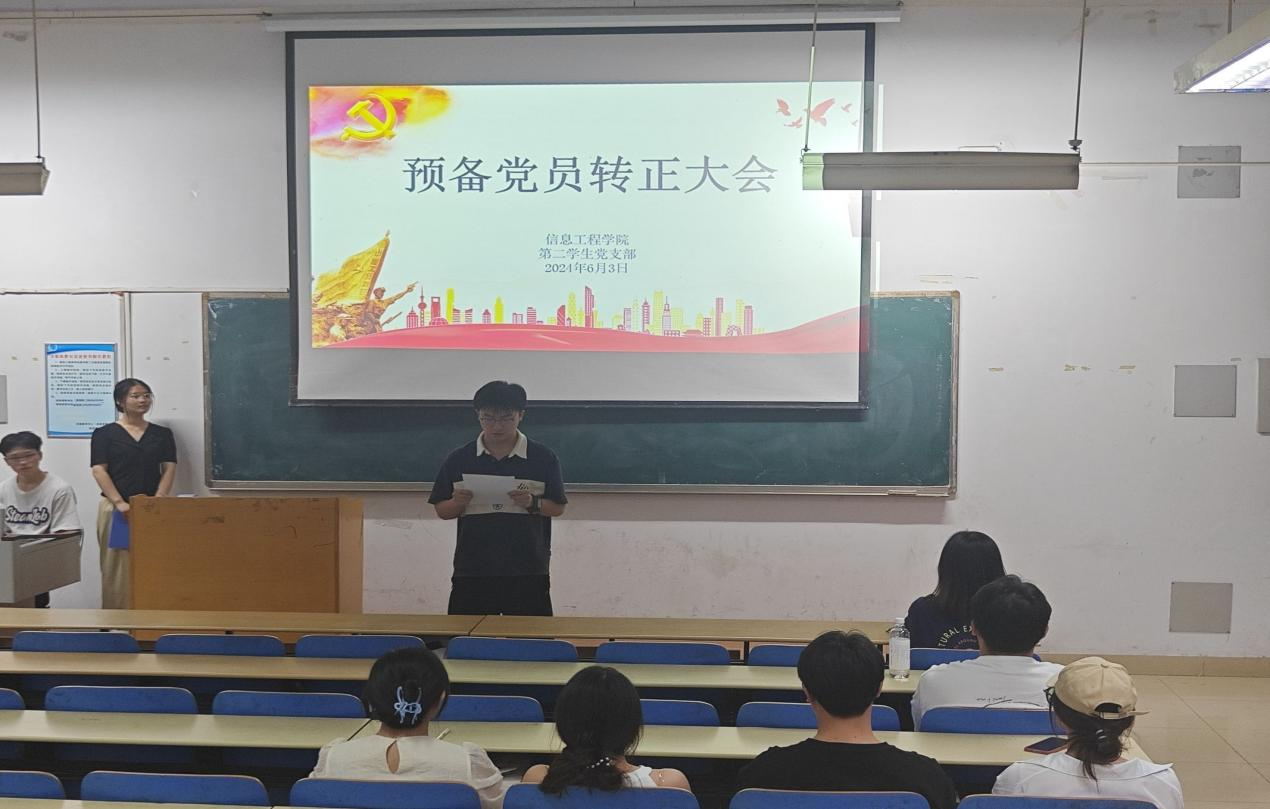 本网讯(学生记者/郭子豪)6月3日,信息工程学院各学生党支部分别在12教209、14教106召开预备党员转正大会,审议、讨论、表决许芮等20名预备党员的转正事宜,各学生党支部书记出席本次会议,全体学生党员参加会议。