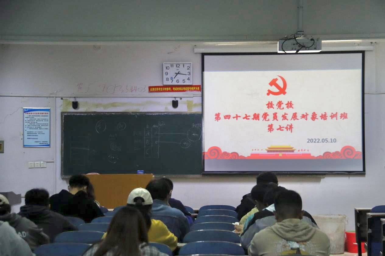 本网讯(学生记者/肖淬源)5月10日晚,信息工程学院于12号楼505教室举办校党校第四十七期党员发展对象培训班第七讲,学院行政支部委员会支部书记郭建昌主讲,第四十七期党员发展对象参加。
