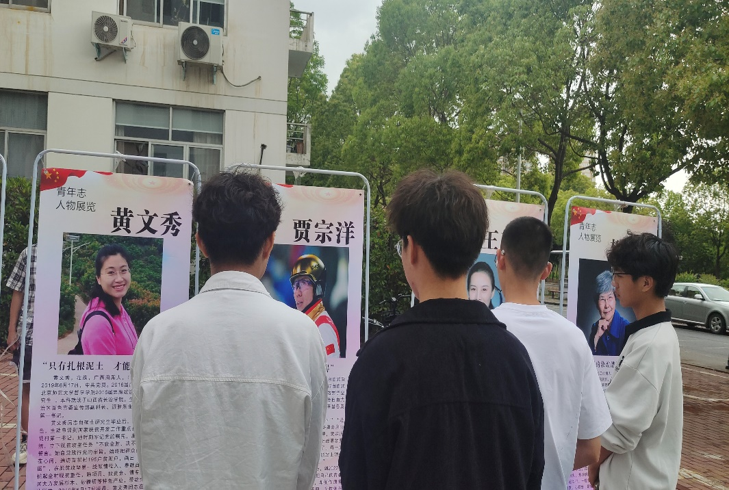 随后,同学们观摩学习12教设立的“青年志”展板,展板上详细介绍了杜富国、黄文秀、谢军等英雄楷模。同学们屏息凝视,在对先前的自主学习内容进行深化的同时,对五四精神的内涵理解地也更加透彻。