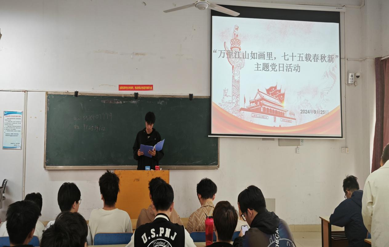 本网讯(学生记者/方培州)为庆祝中华人民共和国成立75周年,进一步弘扬爱国主义精神。信息工程学院于9月开展了“万里江山如画里,七十五载春秋新”主题党日活动,本次活动由信息工程学院学生党建工作站与信息工程学院工匠精神研习社承办,信息工程学院各年级入党积极分子、学生党员积极参与其中。