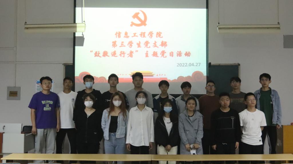 本网讯(学生记者/胡浩洋)4月27日,信息工程学院第三学生党支部在14教302教室开展“致敬逆行者”主题党日活动,支部全体党员参加。