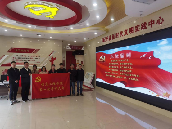 本网讯(特约记者/刘峰)4月5日,为增强基层党组织凝聚力和战斗力,教育党员不忘初心使命,增强责任心,勇于担当作为。信息工程学院第一教师党支部赴新野新时代文明实践中心开展红色教育主题党日活动,第一教师党支部全体党员参与。