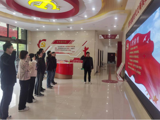 到达新野县新时代文明实践中心后,在讲解员的指引下,党员老师们参观了传习中心、初心讲堂、志愿者服务站、学雷锋工作室、印象新野、非遗文化展示、安全警示教育展示以及群众文化活动等功能区。在传习中心,通过“新时代深入推进党的建设新的伟大工程”系列专题,老师们深入学习了新时代党的建设总要求和总体布局的四梁八柱。在党支部书记刘峰老师的带领下,第一教师党支部全体党员重温入党誓词,砥砺前进,不忘初心使命,激发工作热情。